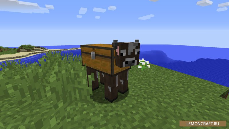 Мод Chest Cow добавит в игру корову носильщика. На ее спине будет сундук в который можно сложит ваши вещи. Но при этом следует учесть то, что корова, это тупое животное. Она будет за вами ходить, пока вы ее чем то приманите. Если вы отвлечетесь и забудете про корову, это грозит вам потерей вашего сундука со всем добром.